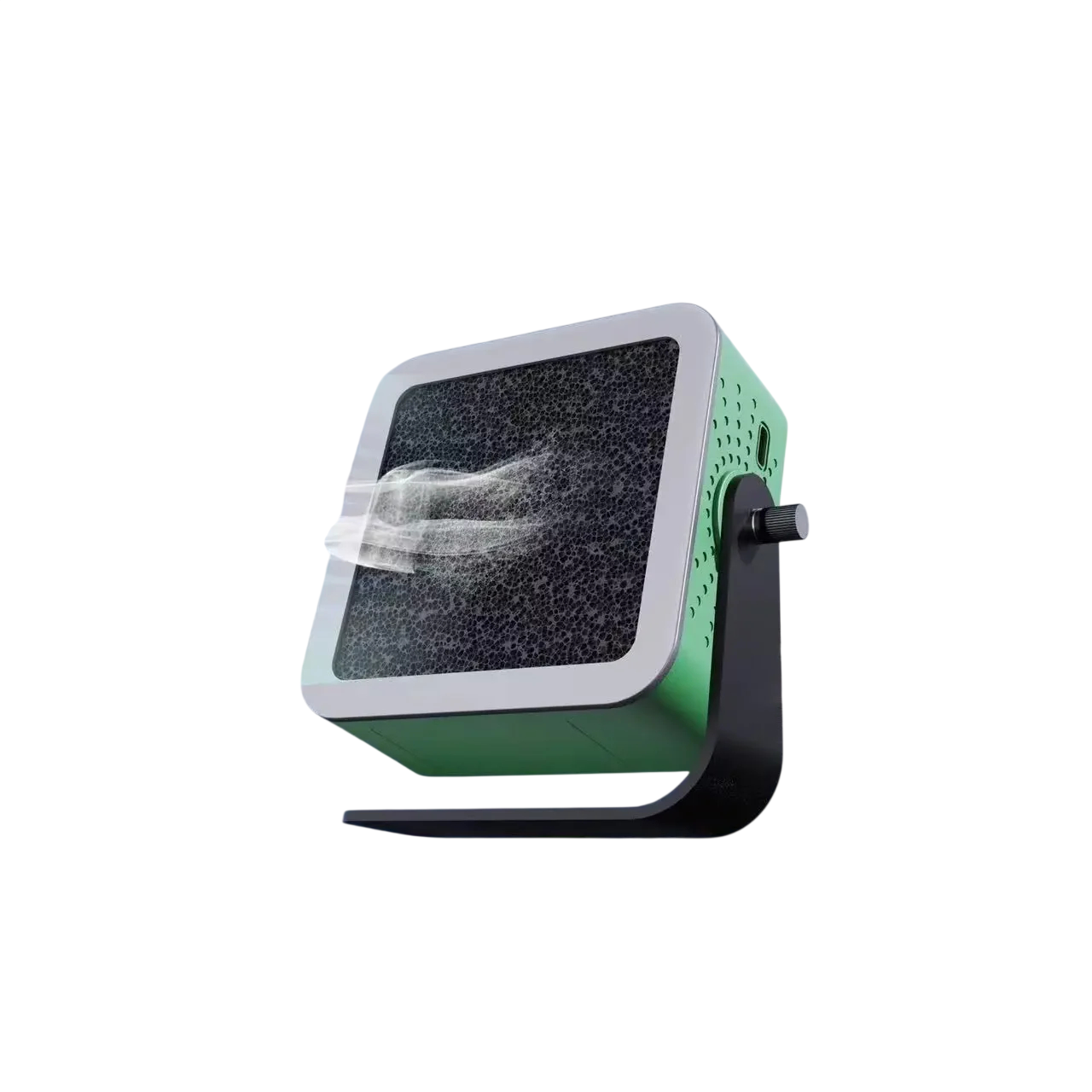Chladicí ventilátor s funkcí odsávání kouře a osvětlení je praktické zařízení určené pro práci při opravách a svařování. Kombinuje více funkcí v jednom kompaktním těle, což usnadňuje organizaci pracovního prostoru. Díky integrované baterii není nutné neustálé připojení k síti, což zvyšuje flexibilitu použití. Konstrukce ventilátoru umožňuje efektivní odvádění kouře vznikajícího při práci. Zelené provedení s otočným držákem zajišťuje stabilitu a snadné nastavení směru.