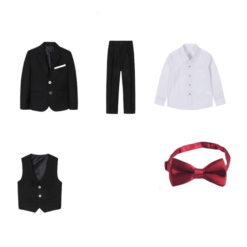• varianta B: 1x sako, 1x košile, 1x vesta, 1x kalhoty, 1x motýlek