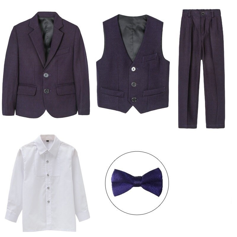 • varianta A: 1x sako, 1x košile, 1x vesta, 1x kalhoty, 1x motýlek