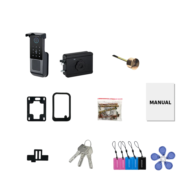 Zámek je vybaven dotykovou klávesnicí a čtečkou otisků prstů, která umožňuje rychlé a jednoduché odemykání. Pro případ potřeby je k dispozici také mechanický klíč, který slouží jako záložní řešení. Konstrukce zahrnuje vnější panel s ovládáním a vnitřní jednotku s otočným mechanismem pro ruční odemčení.