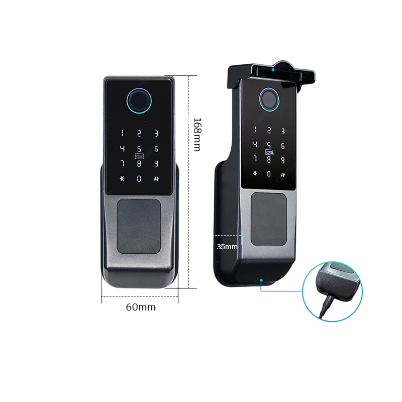 Velkou výhodou je možnost napájení dvěma způsoby. Zámek lze provozovat pomocí 4× AA baterií, nebo jej připojit k externímu zdroji s napětím DC 12V, což rozšiřuje možnosti instalace podle konkrétních požadavků. V případě potřeby je k dispozici také USB port pro nouzové napájení.