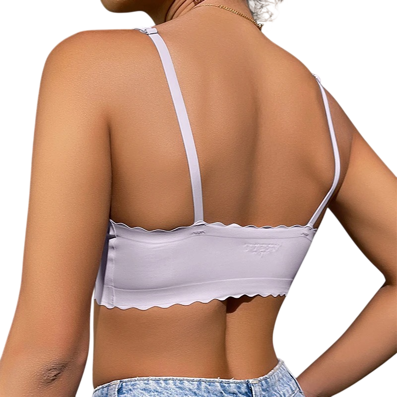Dámská bezešvá podprsenka s tenkými ramínky a vroubkovaným lemem polyamid lehké provedení pro každodenní nošení a pohodlí