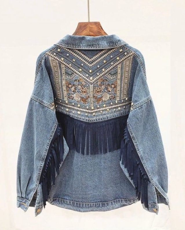 Dámská džínová bunda s třásněmi