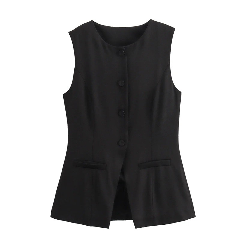 Úvodní strana Úvodní strana Oblečení a doplňky Dámské Dámské bundy a kabáty Dámské vesty Dámská elegantní jednobarevná vesta s výstřihem do O Zapínání na knoflíky Stylová polyesterová vesta bez rukávů pro každodenní i formální nošení