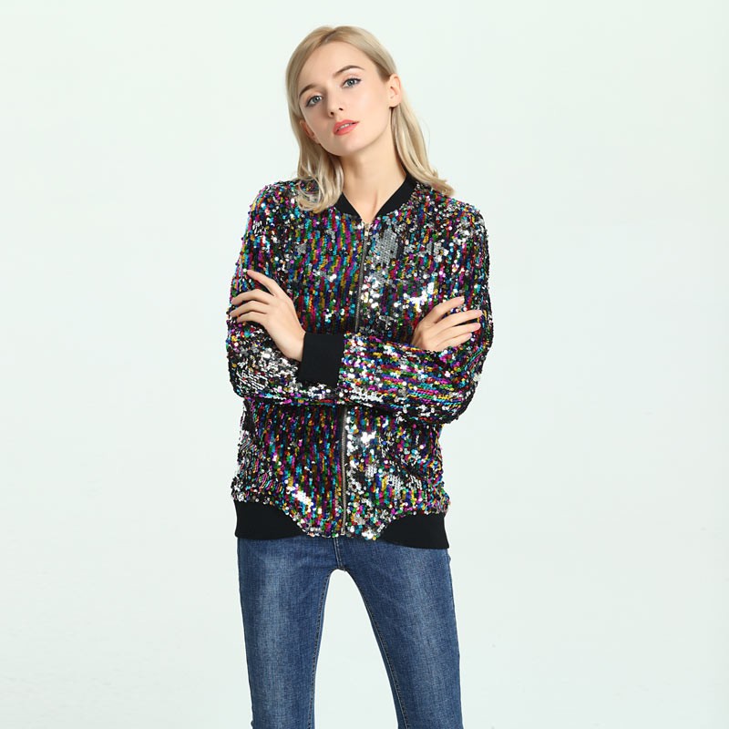 Užívejte si jarní dny s touto krásnou bundou s barevnými flitry.