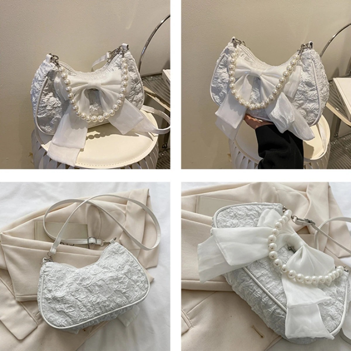 Dámská kabelka s mašlí je navržena pro ženy, které chtějí dodat svému outfitu jemný a elegantní akcent. Díky perlové rukojeti působí kabelka luxusním dojmem a přirozeně přitahuje pozornost. Praktické rozměry umožňují snadné přenášení nezbytností, aniž by kabelka působila robustně. Je vhodná jako doplněk k šatům, sukním i elegantním kalhotovým outfitům. Pokud hledáš kabelku, která kombinuje jemný design, elegantní detaily a praktickou velikost, tento model je ideální volbou.