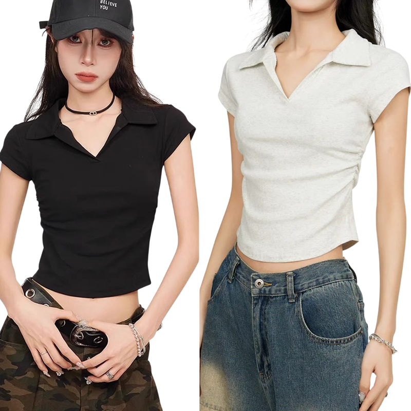 Úvodní strana Úvodní strana Oblečení a doplňky Dámské Dámské trička a topy Dámské trička a topy s krátkým rukávem Dámská polokošile crop top Výstřih do V s límečkem Jednobarevné bavlněné tričko Krátký moderní střih pro ženy