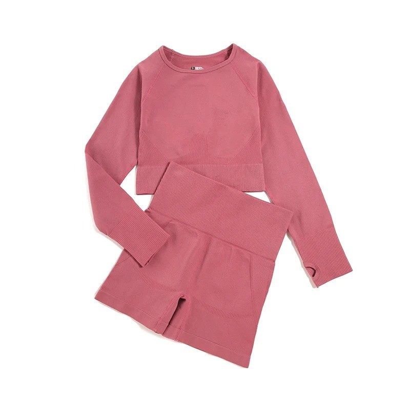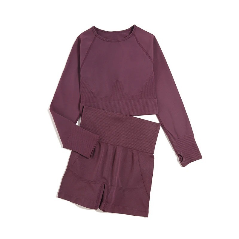 Dámská sportovní souprava Kraťasy a triko s dlouhým rukávem Jednobarevná fitness souprava z nylonu