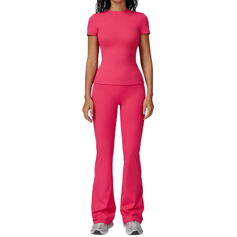 Dámská sportovní souprava s kalhotami a tričkem s krátkým rukávem, jednobarevné, nylon, polyester, pohodlná a stylová pro fitness