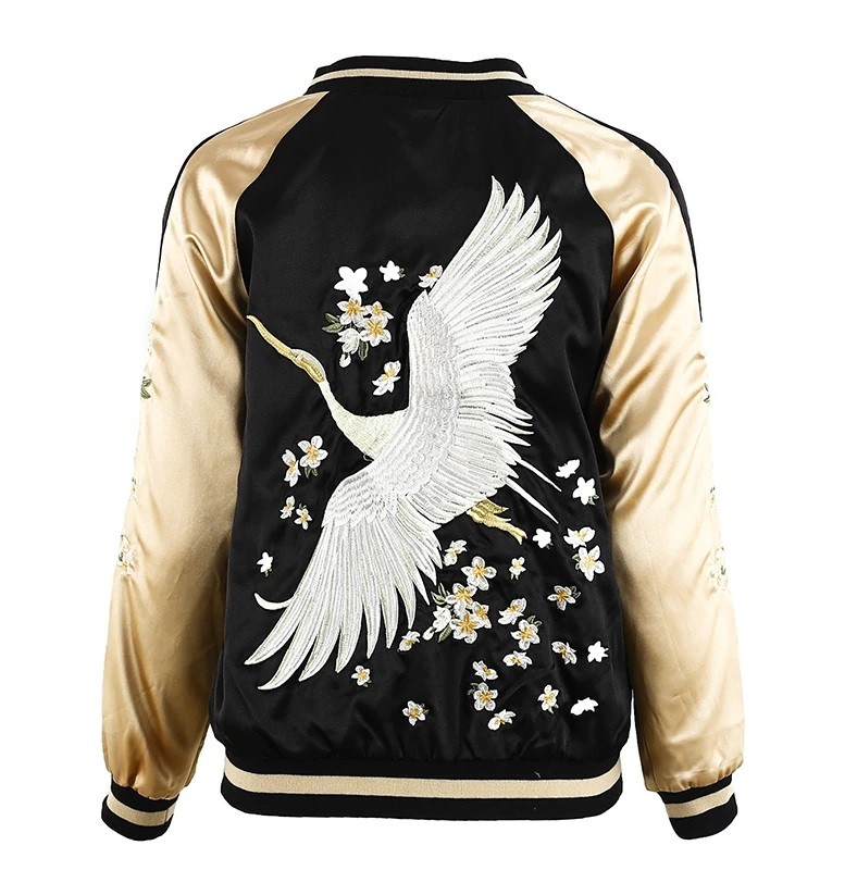 Dámská stylová bunda s květinami - Černo-zlatá