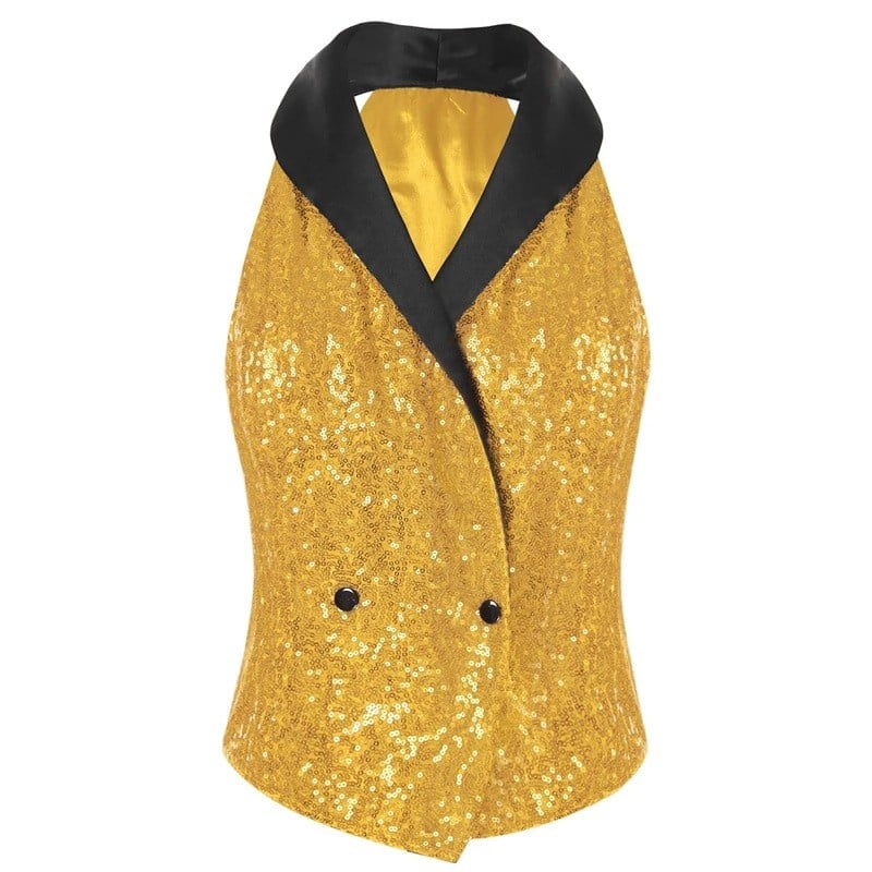 Úvodní strana Úvodní strana Oblečení a doplňky Dámské Dámské crop topy Dámské crop topy bez rukávů Dámská vesta s flitry a klopovým límcem bez rukávů polyester elegantní střih pro společenské nošení a večerní outfit