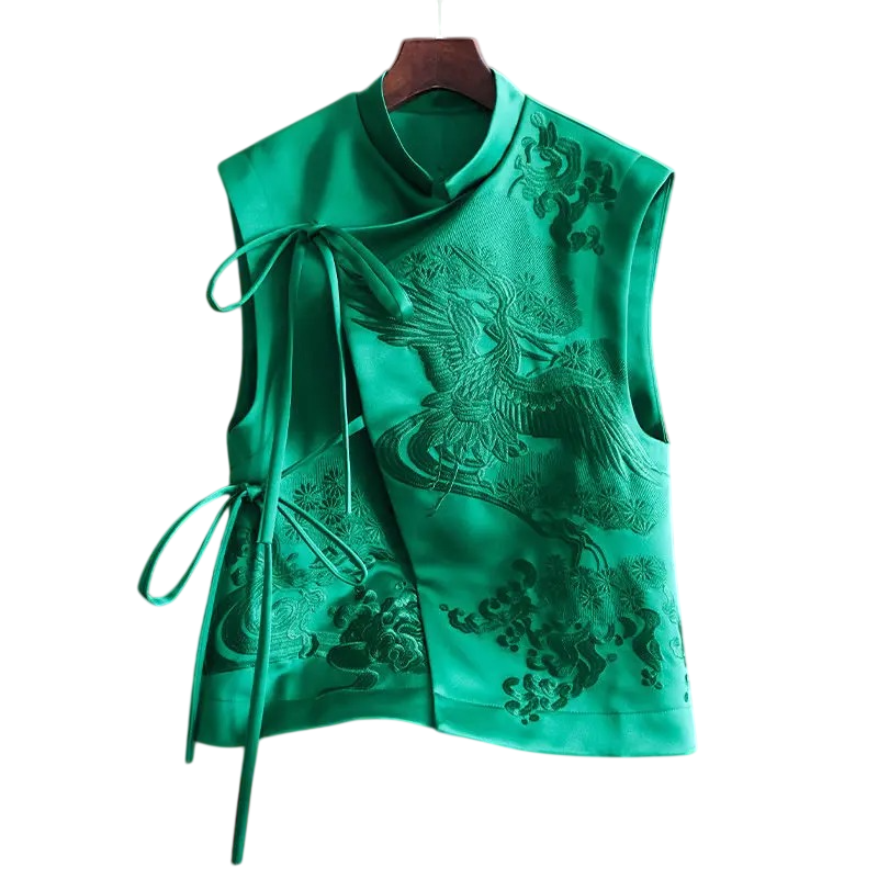 Úvodní strana Úvodní strana Oblečení a doplňky Dámské Dámské crop topy Dámské crop topy bez rukávů Dámská vesta s výšivkou a zavazováním na boku bez rukávů polyester elegantní střih pro společenské nošení i stylové vrstvení