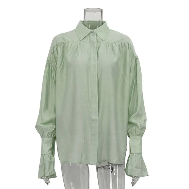 Dámská volná průsvitná halenka s límečkem Dlouhý rukáv Volánkové rukávy Lehký vzdušný materiál Elegantní styl pro léto i volný čas