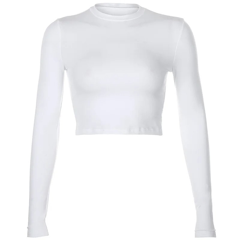 Dámské crop tričko s dlouhým rukávem Elastické přiléhavé tričko Kulatý výstřih Elegantní tričko pro každodenní nošení i večerní styl