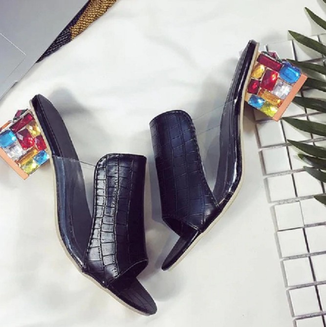 Obujte se na letní dny do těchto pantoflí na podpatku. Pantofle jsou velmi pohodlné.