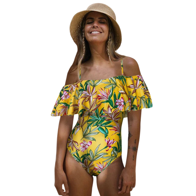 Úvodní strana Úvodní strana Oblečení a doplňky Dámské Dámské plavky a bikiny Dámské jednodílné plavky Dámské jednodílné plavky žluté Potisk květin Výstřih do O Tenká ramínka S volánkama Polyester Spandex Plavky k moři bazénu