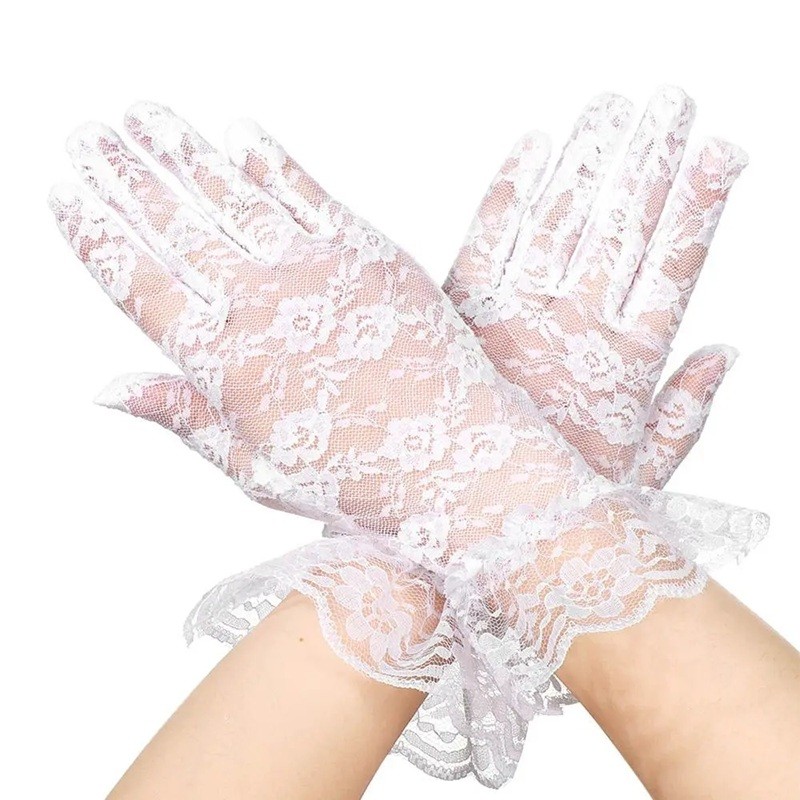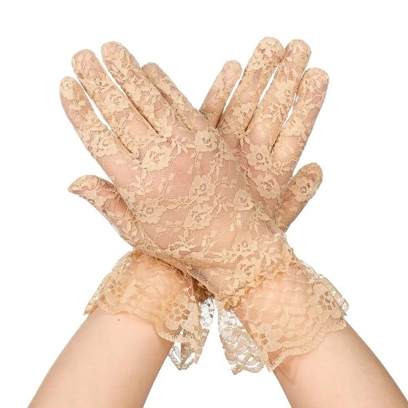 Dámské krajkové rukavice celoprsté krátké s řasením prodyšné polyester společenské rukavice na slavnostní a formální příležitosti