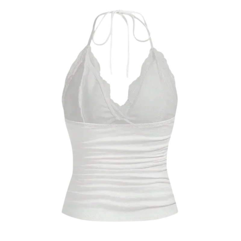 Úvodní strana Úvodní strana Oblečení a doplňky Dámské Dámská tílka Dámské krajkové tílko Tenká ramínka Výstřih do V Zavazování za krkem Jednobarevný elegantní top z polyesteru a spandexu