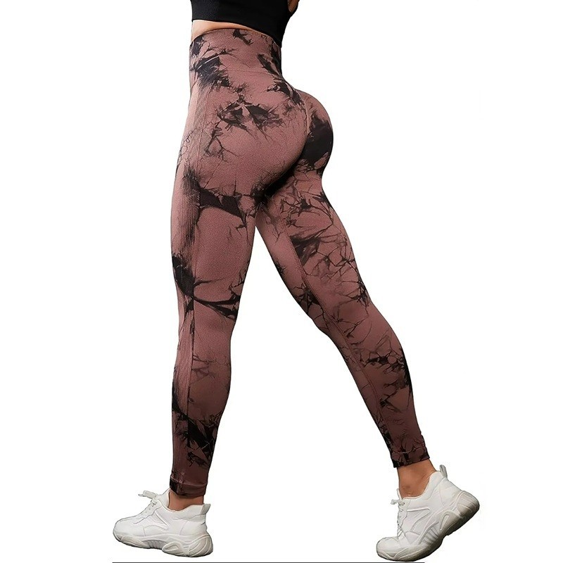 Dámské legíny s vysokým pasem Push-up bezešvé jógové kalhoty s batikovaným vzorem Elastické fitness legíny na cvičení i volný čas