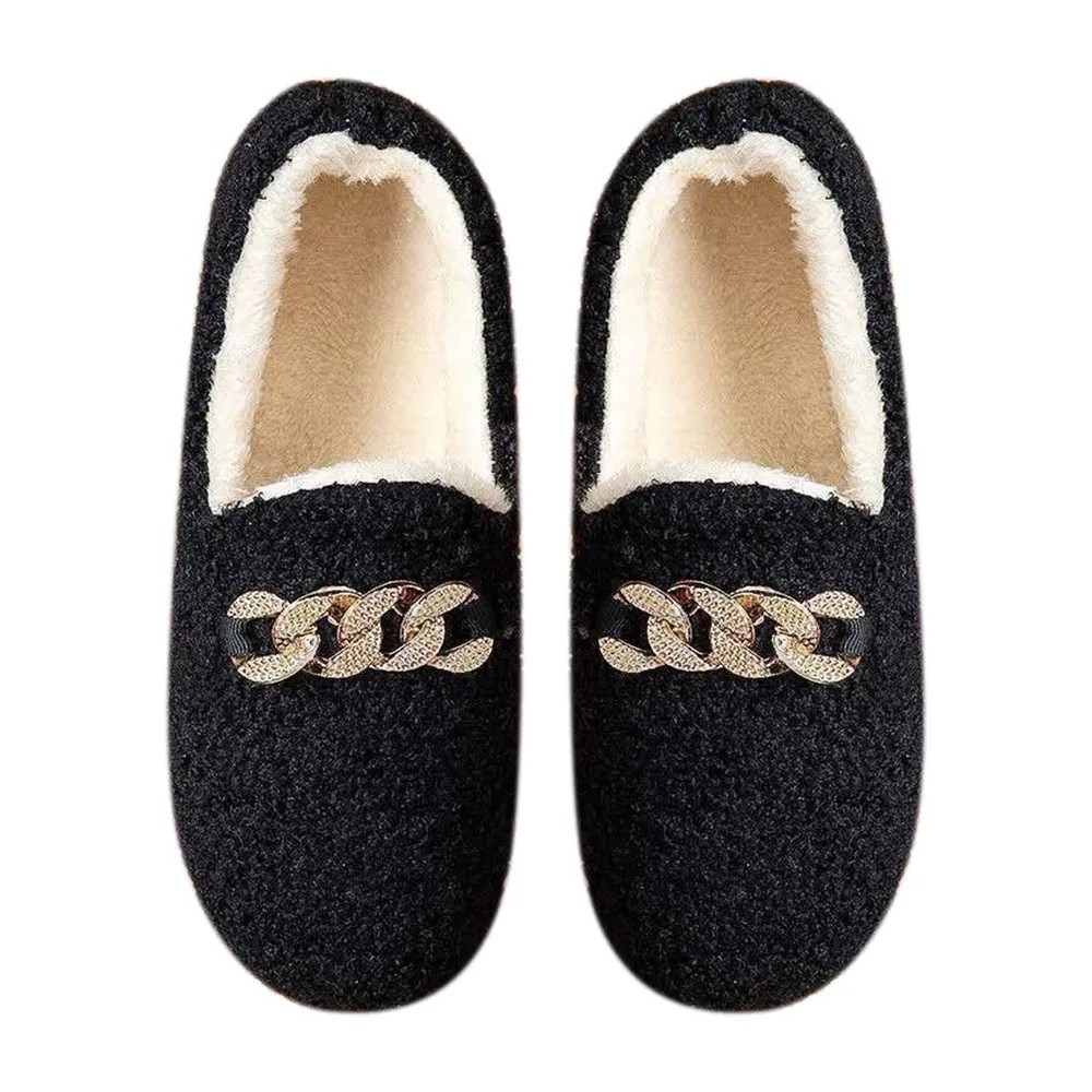 Tyto dámské plyšové mokasíny kombinují elegantní vzhled klasické obuvi s pohodlím hřejivých zimních bačkor. Jejich tvar připomíná tradiční mokasíny, ale díky měkkému a teplému plyšovému vnitřku se perfektně hodí jako domácí obuv pro chladné dny. Protiskluzová podrážka poskytuje bezpečný krok po hladkých podlahách a zároveň drží tvar při každodenním nošení. Mokasíny jsou navržené tak, aby krásně obepnuly nohu, udržely teplo a dodaly styl i během domácí pohody. Jsou ideální volbou pro každou ženu, která chce mít nohy v teple a zároveň vkusně obuté.