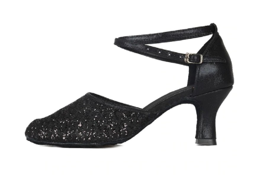 Tyto taneční boty na podpatku zdobené flitry jsou velmi pohodlné.