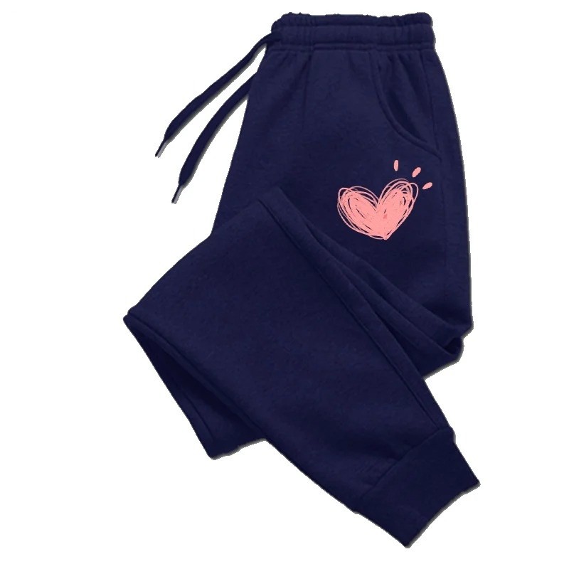 Úvodní strana Úvodní strana Oblečení a doplňky Dámské Dámské tepláky Dámské tepláky Jednobarevné s potiskem srdíček na bocích Na tkaničku Materiál polyester Pohodlné volnočasové kalhoty