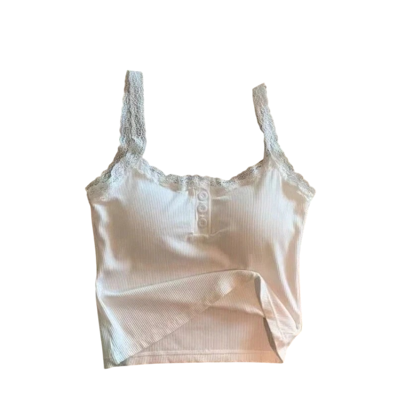 Toto dámské tílko je stylovým a ženským kouskem, který v sobě spojuje romantické detaily a moderní střih. Jednobarevné provedení působí jemně a nadčasově, zatímco krajka a knoflíky ve výstřihu dodávají modelu elegantní a propracovaný vzhled. Crop top délka zvýrazňuje pas a dodává outfitu lehkost a svěží letní charakter. Tenká ramínka spolu s výstřihem do O vytvářejí vzdušný a pohodlný design vhodný pro teplé dny. Díky univerzální velikosti se tílko přizpůsobí různým typům postav a zajišťuje komfort při nošení.