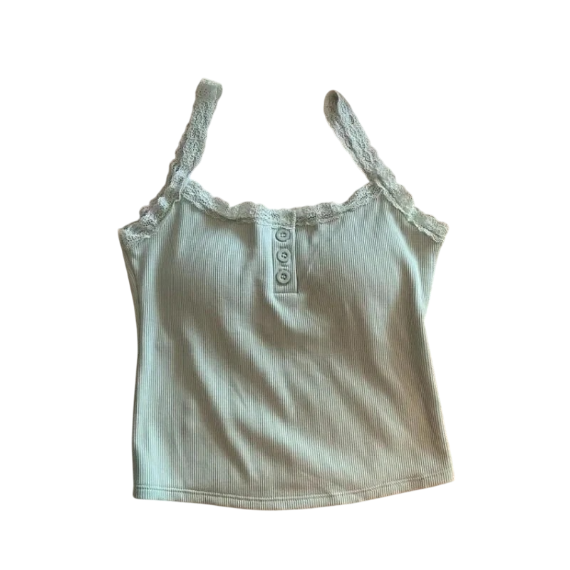 Dámské tílko Crop top Univerzální velikost Jednobarevné s krajkou a knoflíky Tenká ramínka Výstřih do O Polyester viskóza