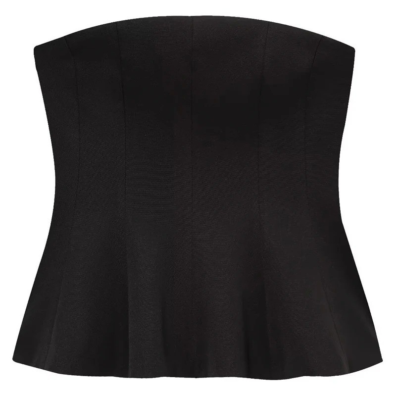 Tílko je navrženo bez ramínek, což umožňuje zvýraznit ramena, krk a dekolt. Přiléhavý střih pomáhá vytvořit štíhlý vzhled a perfektně drží tvar při nošení. Materiál je lehký, prodyšný a vhodný i pro delší nošení. Tílko lze nosit samostatně nebo kombinovat s elegantními i ležérními outfity.