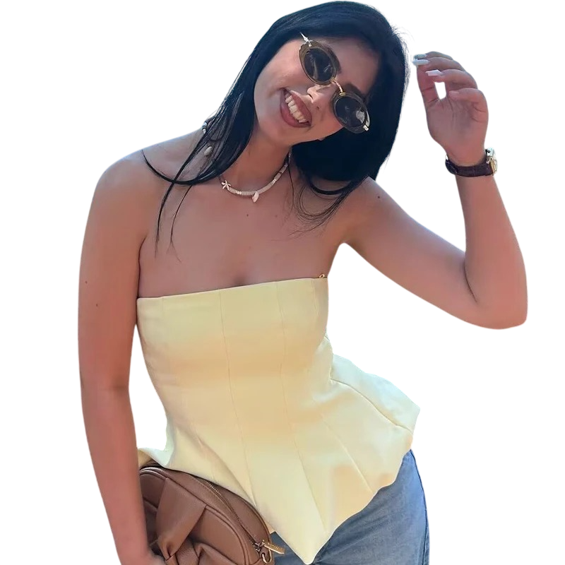 Úvodní strana Úvodní strana Oblečení a doplňky Dámské Dámská tílka Dámské tílko korset Bez ramínek Jednobarevné Výstřih do O Přiléhavý polyesterový top elegantní letní styl