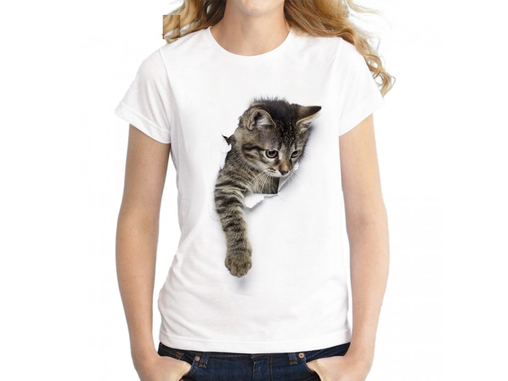 Dámské tričko 3D s kočkou J539