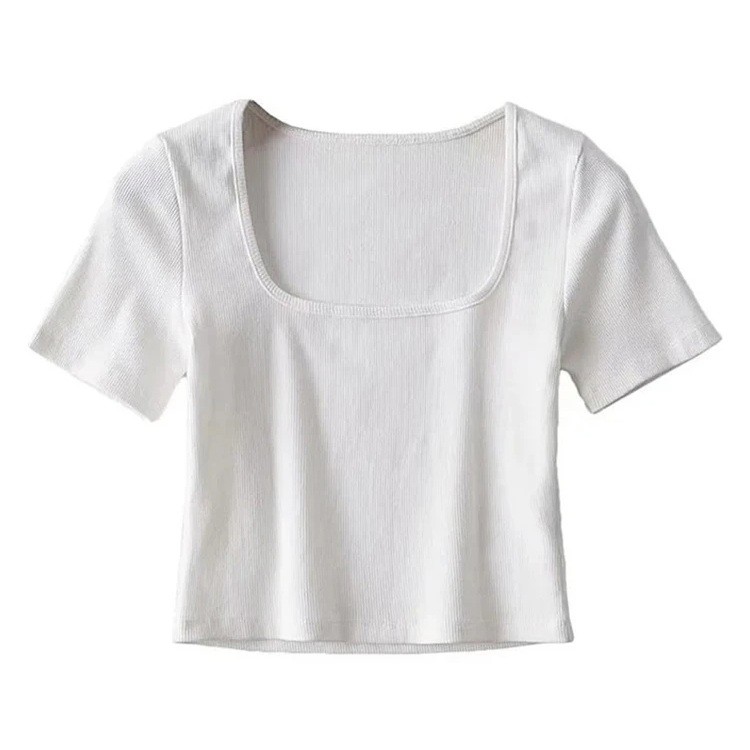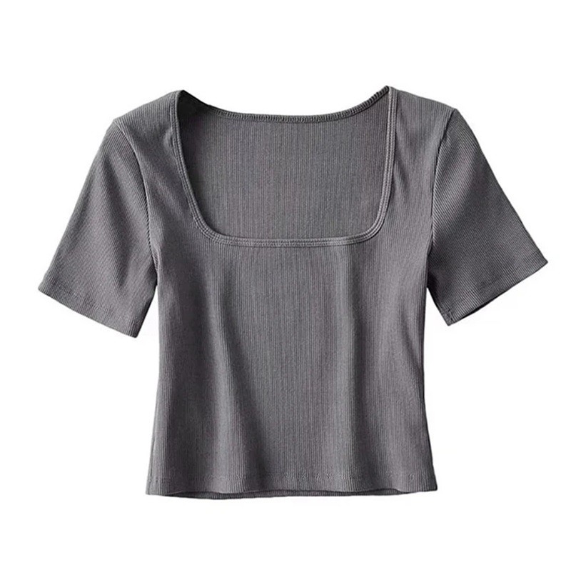 Dámské tričko s krátkým rukávem Elegantní čtvercový výstřih Přiléhavý střih Lehký žebrovaný materiál Stylový basic top pro každodenní nošení