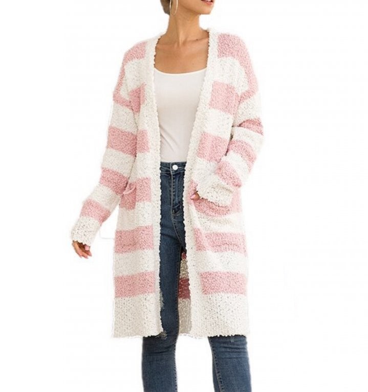 Dámský huňatý cardigan pruhovaný
