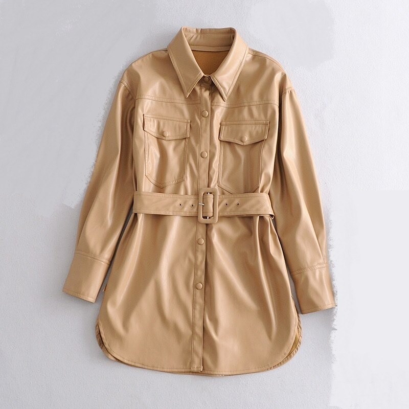 Dámský kožená bunda s opaskem