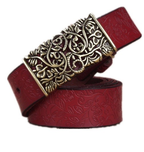 Dámský kožený pásek s ozdobnou přezkou