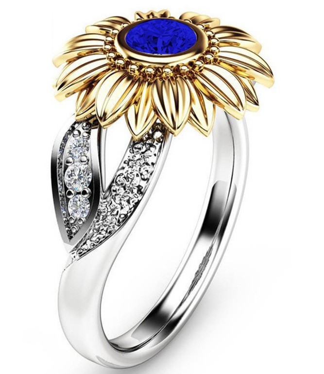 Tento prsten zdobí drobný elegantní květ s kamínkem uprostřed.