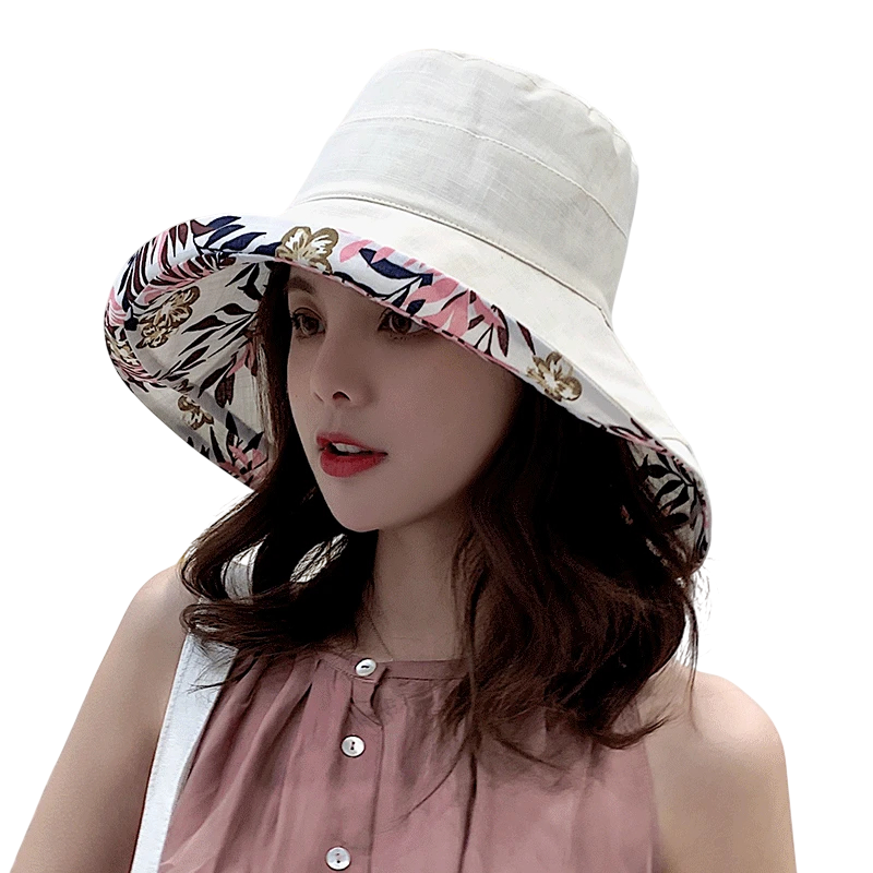 Dámský oboustranný klobouk 56-58 cm Bavlna a len Letní prodyšný klobouk 2v1 Lehké pohodlné nošení Stylový módní doplněk
