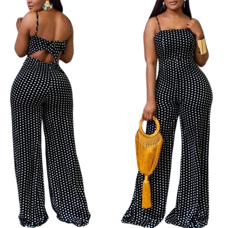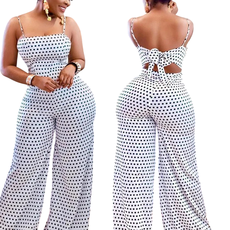 Dámský overal Tečkovaný vzor Široké kalhoty Tenká ramínka Zavazování na zádech Výstřih do O Lehký polyester