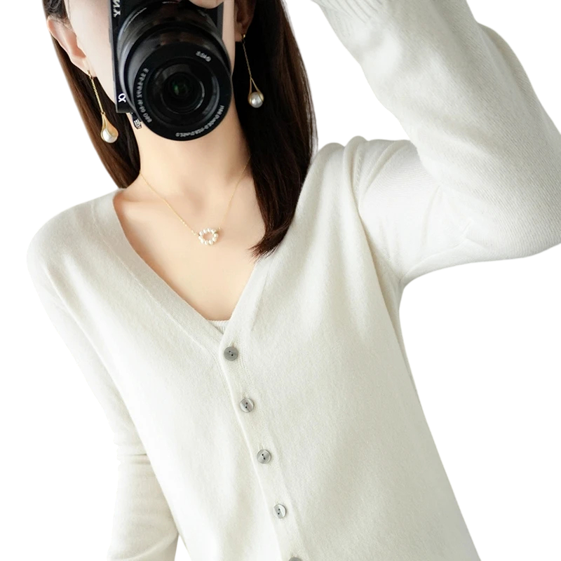 Úvodní strana Úvodní strana Oblečení a doplňky Dámské Dámské svetry a kardigany Dámské kardigany Dámský pletený kardigan s výstřihem do V Elegantní svetr na knoflíky Jednobarevný módní svetr Různé barvy Polyester Akryl