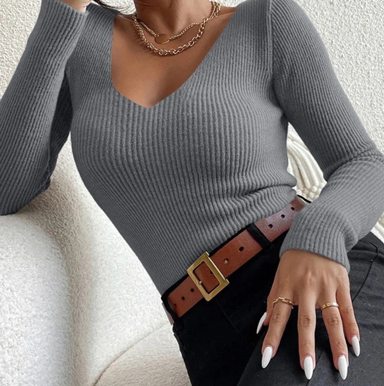 Úvodní strana Úvodní strana Oblečení a doplňky Dámské Dámské svetry a kardigany Dámské svetry Dámský pletený svetr z bavlny a akrylu s výstřihem do V Jednobarevný elegantní svetr s dlouhým rukávem Univerzální velikost pro každodenní nošení