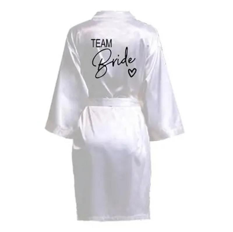 Dámský župan team bride Hedvábně jemný saténový župan s nápisem pro družičky Zavazování v pase na tkaničku Lehký polyester pro svatební přípravy