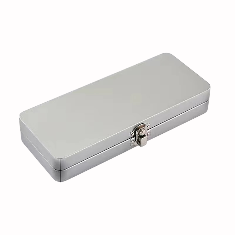 Kovová krabička ve tvaru kufříku je vhodná pro balení dárků, sladkostí nebo drobných předmětů. Díky svému obdélníkovému tvaru a nízkému profilu umožňuje přehledné uspořádání obsahu. Víko je opatřeno klipovým uzávěrem, který pomáhá udržet uložené věci bezpečně uzavřené. Krabička se hodí jak pro dárkové balení, tak i jako praktická dóza pro každodenní použití.