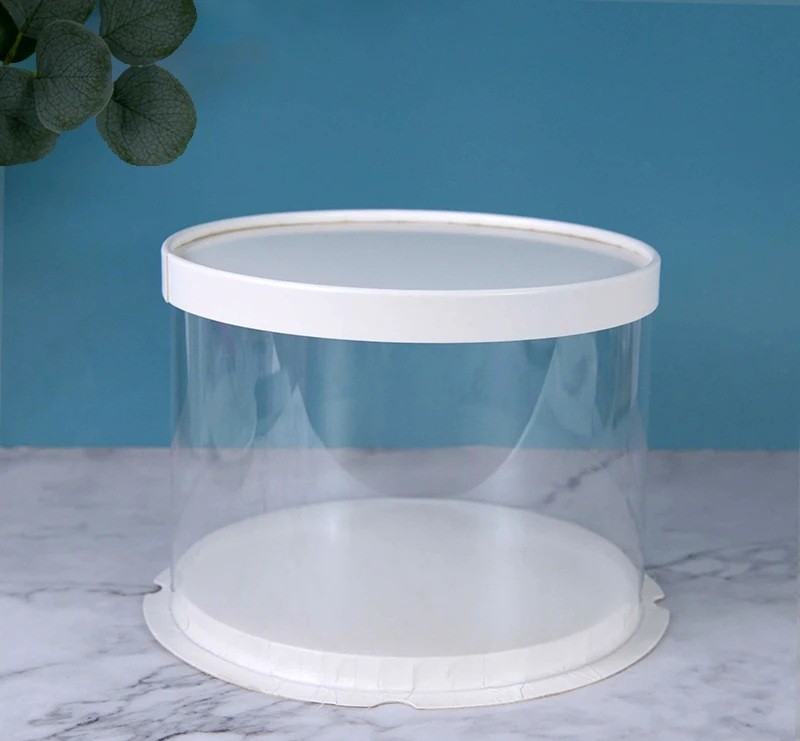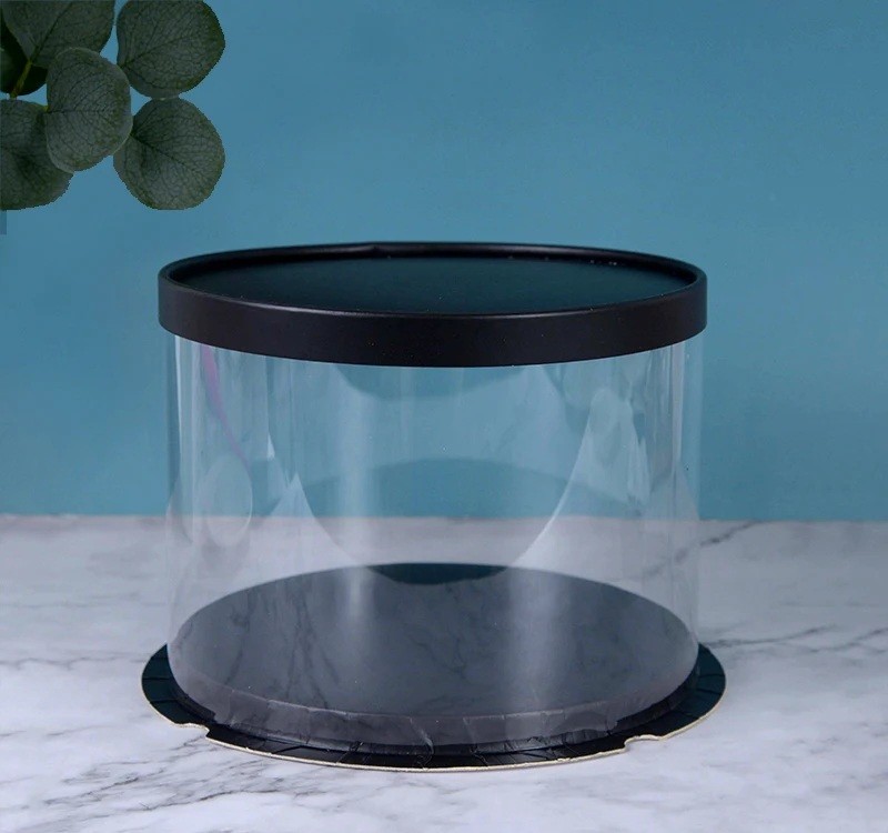 Průhledná válcová krabička na dort nebo dárky. Skládací provedení s víkem vhodné pro prezentaci i ochranu obsahu. Celý popis