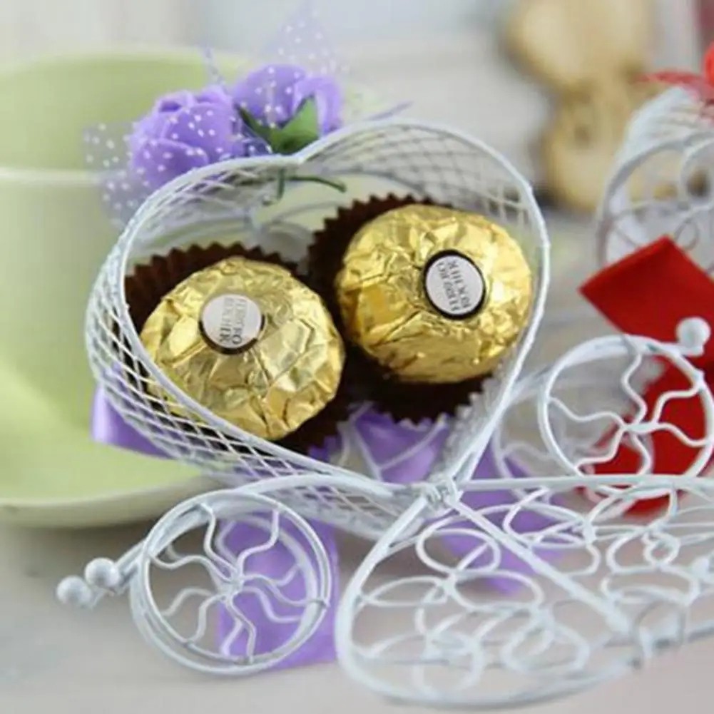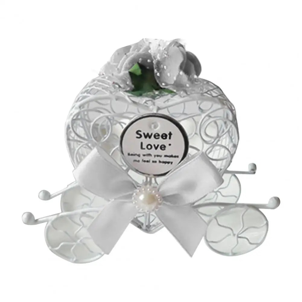 Dárková krabička ve tvaru kočáru 12 × 8 cm kovová dekorativní bílá krabička na drobnosti sladkosti a svatební balení