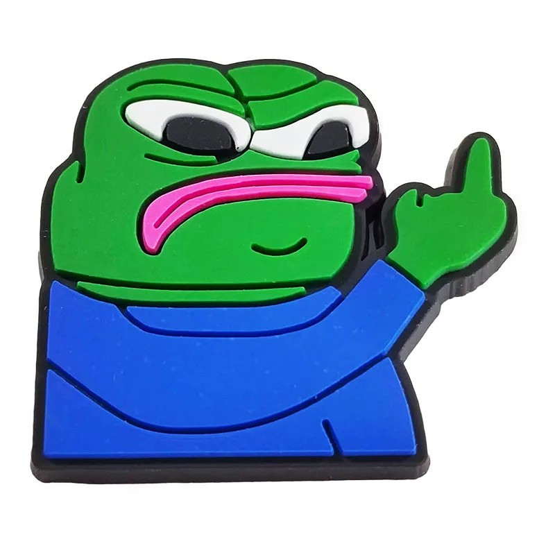 Dekorace na crocsy s motivem animovaného žabáka představuje výrazný doplněk, který dodá obuvi osobitý vzhled. Motiv zobrazuje postavu žáby s gestem prostředníčku, což vytváří nepřehlédnutelný detail vhodný pro každodenní nošení i výraznější styl.