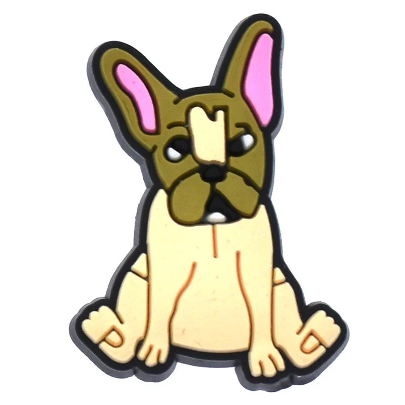 Dekorace na crocsy francouzský buldoček PVC béžová hnědá ozdoba do nazouvací obuvi doplněk do otvorů bot motiv psa