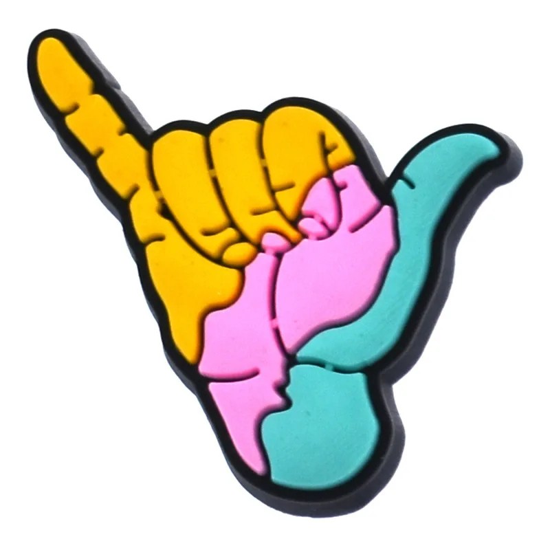 Dekorace na crocsy gesto ruky PVC vícebarevná ozdoba do nazouvací obuvi doplněk do otvorů bot barevný motiv ruky