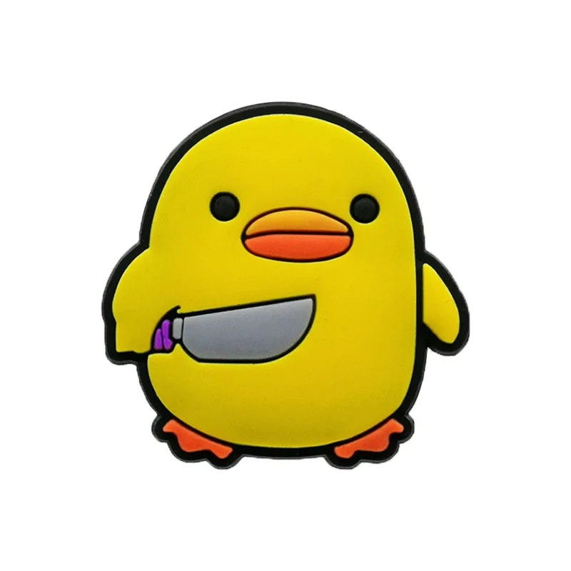 Dekorace na crocsy s motivem kuřete je výrazný doplněk, který na obuvi nepřehlédnete. Na obrázku je jasně vidět žluté kuře s nožem, zpracované v jednoduchém kresleném stylu s kontrastními detaily. Motiv působí nápaditě a díky kompaktnímu provedení se hodí jako samostatná ozdoba i jako součást větší kombinace dekorací. Tvar je přehledný, dobře čitelný a snadno rozpoznatelný i při menším rozměru. Ozdoba se hodí do crocs i dalších nazouváků s otvory.