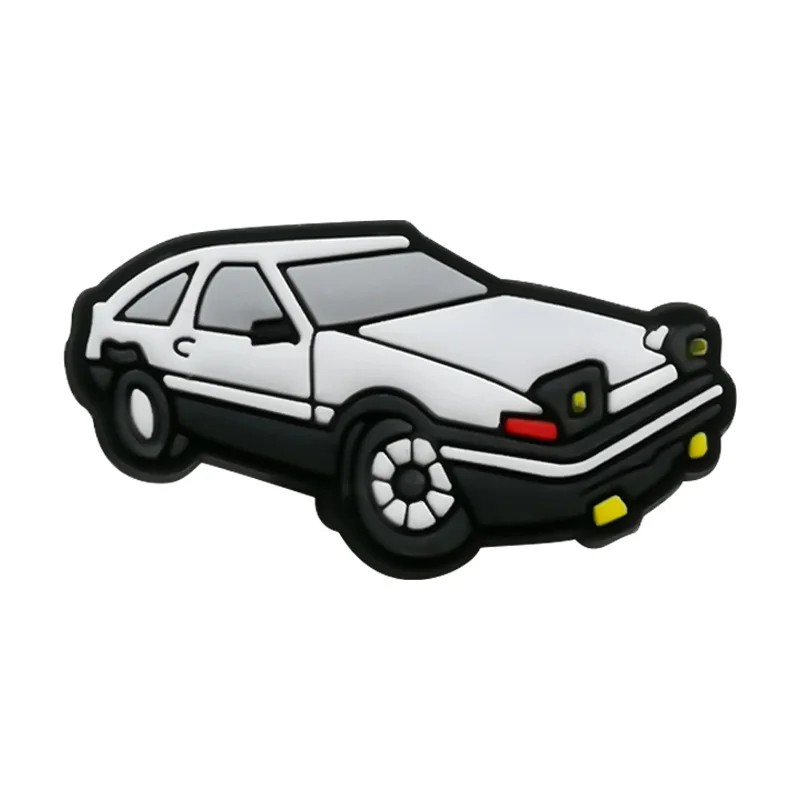 Dekorace na crocsy šedé sportovní auto 3–4 cm PVC ozdoba do crocs obuvi doplněk na nazouváky s otvory
