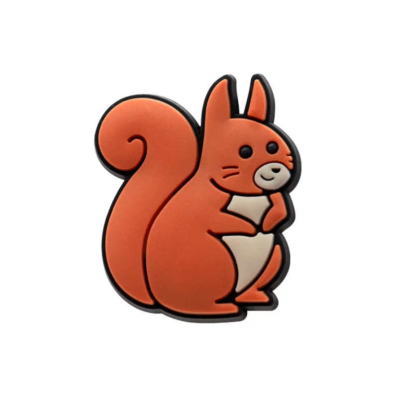 Dekorace na crocsy veverka 2–3 cm PVC oranžovo béžová ozdoba do bot a nazouváků pro snadné umístění s lesním motivem